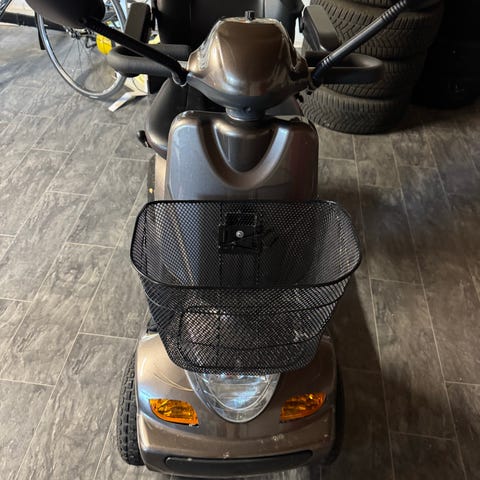 Mokka El-scooter udstyret med kurv foran og bag. komfortabelt sæde med armlæn. Ca 3,5 til 4 år. Har Max kørt 50 Km. Alt virker, der er tilkøbt original bagage kurv og garage.