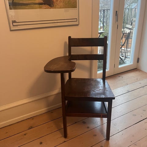Spritny stol med skrive plade.