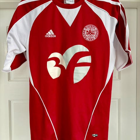Fans bar trøjer som denne til skolekampe, sommerturneringer og foran tv’et, når landsholdet spillede. Den fanger følelsen af et land, der drømte stort og fulgte hvert eneste øjeblik.