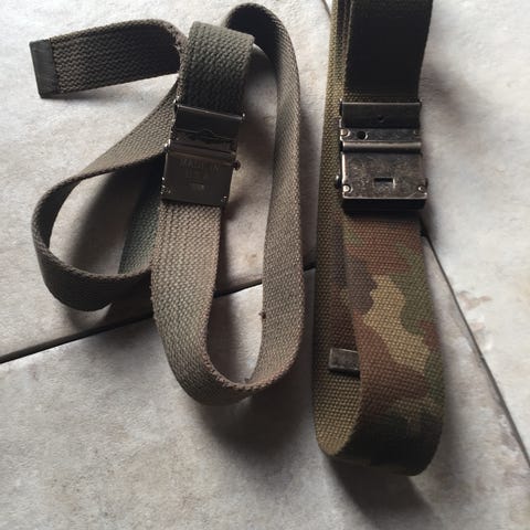 Uniform, militærbælte, Dette solide bælte har et messingspænde som kan afmonteres, har bæltet fra et tidligere overskudslager