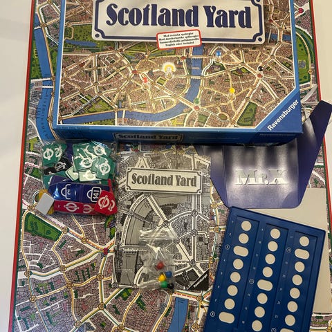 Ravensburger Scotland Yard brætspil fra 1983. Spillet foregår i London og involverer strategi og samarbejde. Indeholder spillebræt, spillebrikker og instruktioner. Egnet til flere spillere og familiebrug.