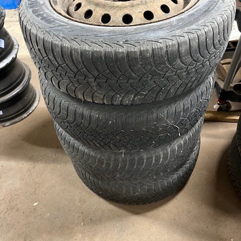 Vinterdæk passer til Yaris 2020. 185/65R15. Inger skader på dæk og fælg. 5 mm dækmønster.