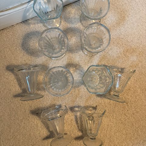 Andet, PÆNT DESSERT SÆT i GLAS MED SKÅL + 4 ISASIETTER