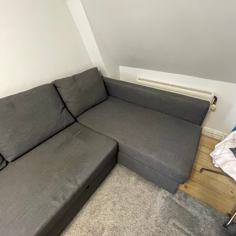 Sælger min IKEA FRIHETEN hjørnesovesofa i farven lys grå. Sofaen har både opbevaring og sovefunktion. Den er brugt, men i rigtig god stand – ingen pletter, ingen skader og ikke-ryger hjem.