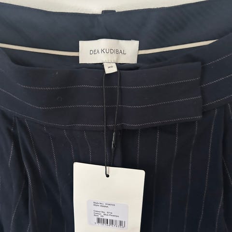 Flotte bukser fra Dea Kudibal i mørkeblå tern. Lækker uldmix kvalitet. Sidder godt. Aldrig brugt.