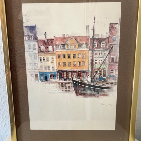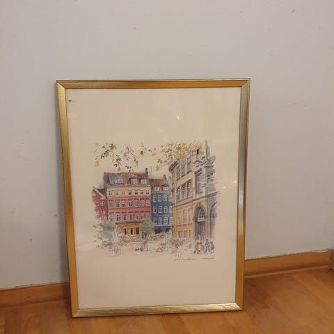 Mads Stage Litografier af Gråbrødretorv og Nyhavn
