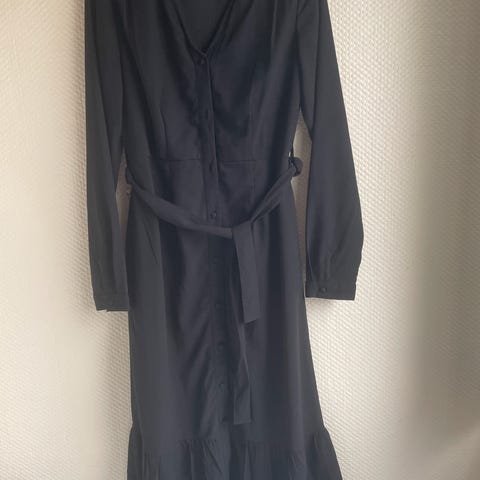 Lille sort kjole med perlesyning under brystet. Der er røget et par perler af i den ene side.