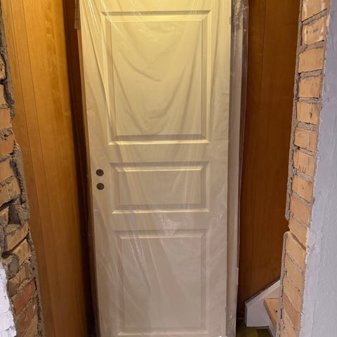 Helt ny dør med karm. Karmen er uden bundstykke.