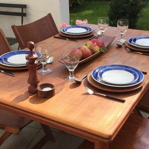 Teak dækketallerkener fra Morsbak. Retro. Diameter 27,7 cm. Sender gerne.