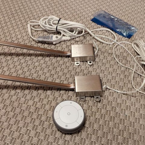 Sælger to IKEA Lindshult LED-lamper beregnet til montering ovenpå skabe – perfekt til at skabe stemningsfuld og funktionel belysning.