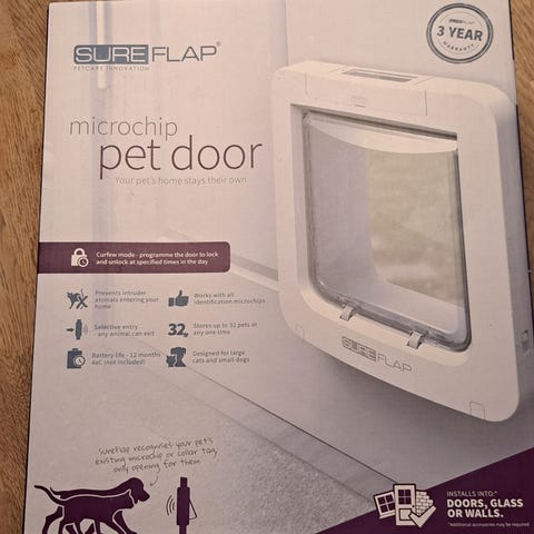 SureFlap Microchip Cat Flap kattelem med mikrochipgenkendelse i hvid.