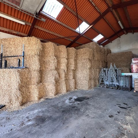 20-30 ældre halmballer i småballer. Skal hentes fra loft og alt skal tages på en gang