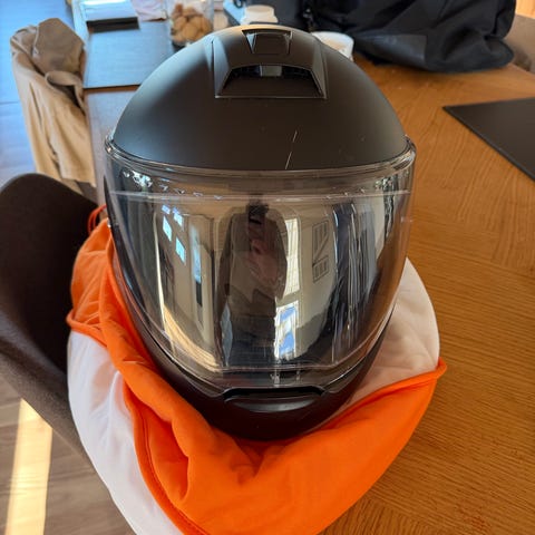 Brugt Schuberth C3 pro hjelm, størrelse M. Sælges med enkelte brugs spor men i god stand. Eksta vesir.