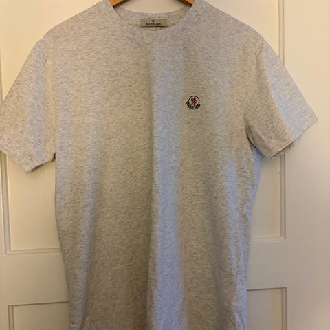 Moncler T-shirt i sort farve, størrelse M til herre. Fremstillet i materialer passende til daglig brug.