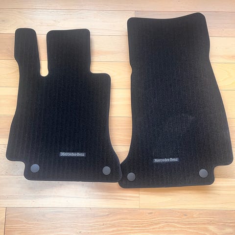 Mercedes-Benz AMG bilgulvmåtter i sort tekstil. Sættet indeholder flere måtter designet til at passe specifikt til bilens gulv. Materialet er tekstil, hvilket giver en blød og holdbar overflade. Måtterne er udformet med præcise udskæringer for at passe til bilens interiør.