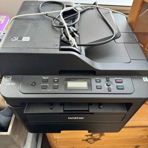 Brother DCP-J1050DW printer multifunktion. Enheden understøtter trådløs Wi-Fi-forbindelse og er designet til at håndtere print, kopiering og scanning. Den har en brugervenlig kontrolpanel med LCD-display og flere funktionstaster til indstillinger og navigation. Velegnet til hjemme- eller kontorbrug. (Incl original ny pakke med blæk patroner, værdi 385 kr) alt fungerer, skal blot støves lidt af😉