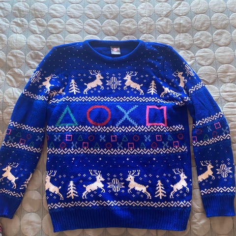 Sælger min grå PlayStation julesweater juletrøje for 450,- Størrelse: Medium (men er lille i størrelsen).