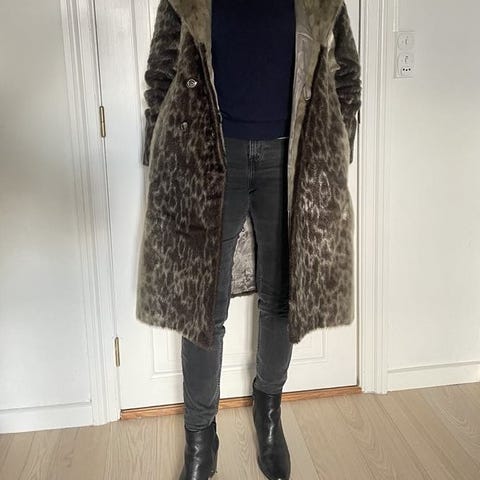 Smukkeste vintage frakke i sælskind med ægte pelskrave. Håndlavet. Lukkes med hægter. Bælte mangler, men så smuk uden. Perfekt stand. Lidt stiv da det er ægte sælskind. Passer str. S/M.