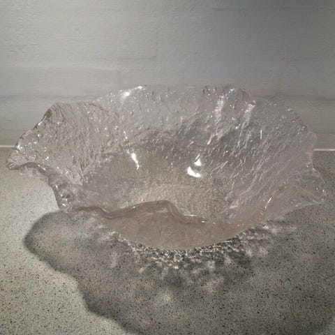 Finsk kunstglas Bordfad fra 1970-erne i klart og brunt glas – signeret