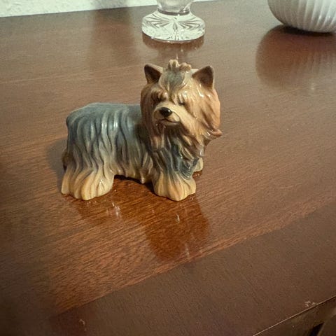 Royal Copenhagen Terrier figurine i keramik med brun glasur. Figuren forestiller en stående terrier og er håndmalet. Den kan bruges som dekorativ genstand i hjemmet eller som samlerobjekt.