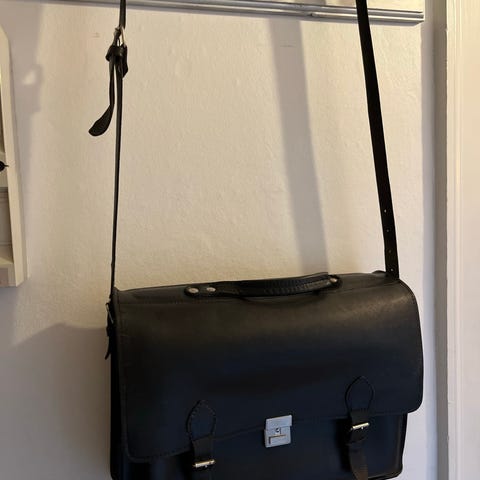Tasken stammer formodentlig fra Sverige fra tiden omkring 2. Verdenskrig. Den er i brugsstand, som det må forventes for en taske af den alder, med lidt sprukken læder osv, men alt læder har jeg givet fedt.