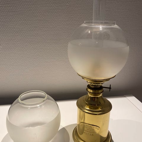 Glasdelene er fra Kastrup-Holmegaard Glasværker. H39cm Ø28cm