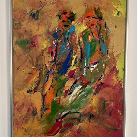 Iswanto Hartono maleri “Strong” fra 1992 med abstrakt motiv. Maleriet har en kombination af varme farver og dynamiske penselstrøg. Billedet måler 70X95 cm, og har været i familien siden kunstneren malede det i 1992.