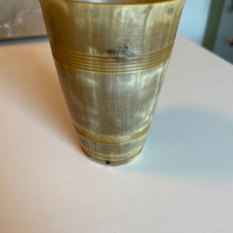 Håndlavet og med et unikt, naturligt mønster og farvespil i brunlige og sorte nuancer. Håndtaget har den naturlige form fra hornets spids og giver et rustikt udtryk.