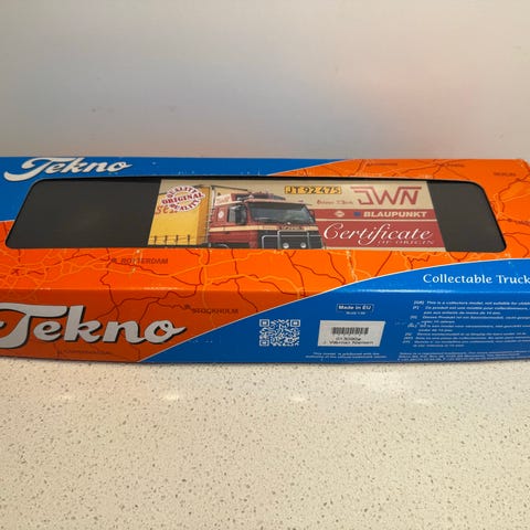 Original aldrig udstillet Scania S 580 i fin original æske med certificat . Henrik Rasmussen Nr Aaby . Tekno nr 71973 .