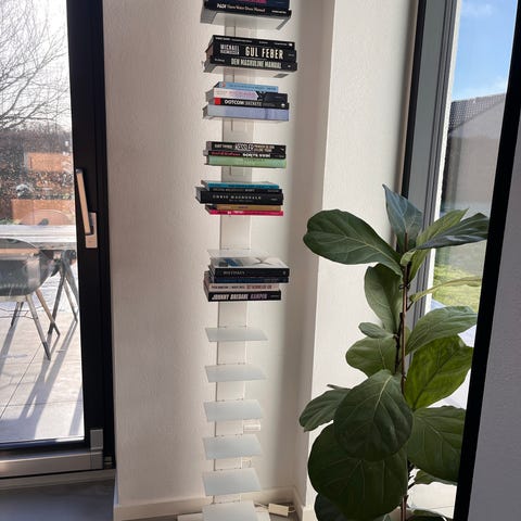 Hvid lakeret metal, monteret med store skruer og farvede kryds, som kan placeres frit. Lidt ridser hist og her på overflader, men ellers generel god stand. Super stabil - har stået i vores køkken, men ikke plads mere efter vi fik køkkenø.