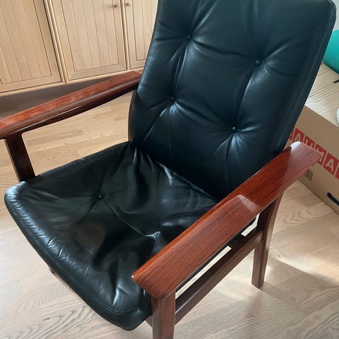 Helge Sibast No “8” med ny renoveret sæde. Desværre er den gået i stykker, og man skal have mod på at få den repareret eller kunne bruge delene. Sædet er super flot, sort læder.