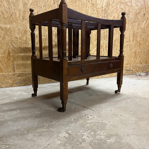 Denne smukke magasinholder i mahogni er mere end bare et møbel – det er et stykke historie til hjemmet. Med smukke løvehoveder med ringe for enden.