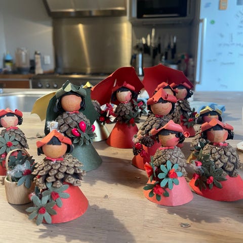Aarikka Jul Dekoration Ornaments, bestående af flere figurer i porcelæn med dekorative elementer. Velegnet til juledekoration og indendørs brug. Forestiller engle og hellige nonner. Højde på den højeste er 33 cm mindste 28 cm.