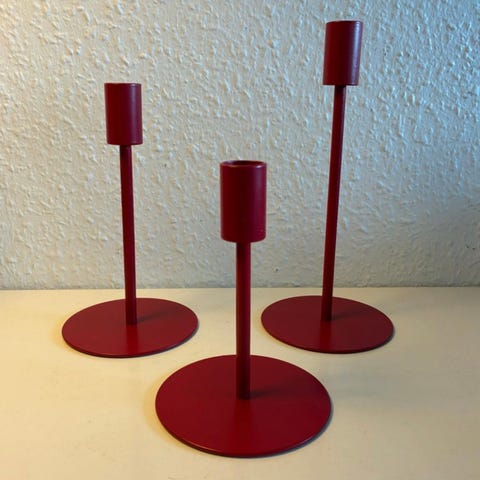 Rød lysestage i metal 21 18 og 14 cm