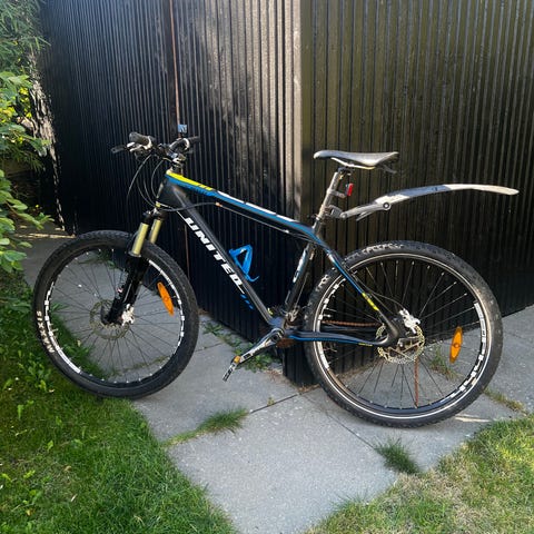 Super fin cykel til den unge teenager. Har fået skiftet kæde og krans. De hydrauliske bremser kræver væske for at virke optimalt. Købt hos jupiter cykler juni 23 - kvittering haves.