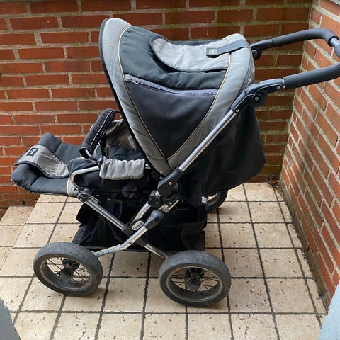 Slidt klapvogn, som dog kører fint. Du skal være ok med at den er slidt og trænger til en klud.