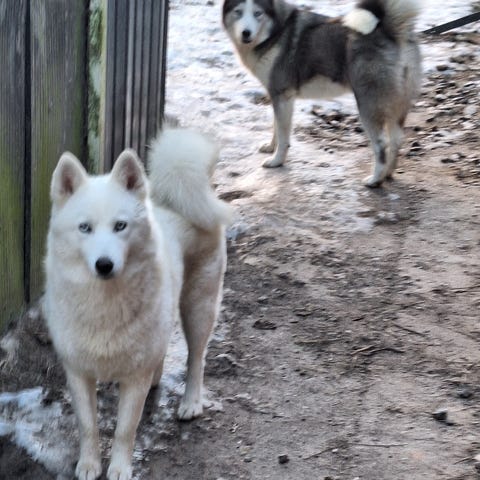 Mød søde blå øjet Clyde en kærlig dejlig dreng på 1 år fra 8 august 2024 vejer ca 20 kg er en mellem hund. Typisk samojede/husky energi niveau