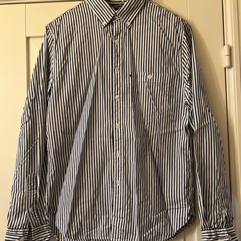 Ralph Lauren langærmet skjorte til herre i størrelse S. Skjorten har en blå ternet mønster og er fremstillet i bomuld. Designet inkluderer knapper foran og en klassisk krave.