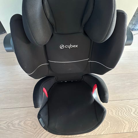 Cybex Solution X2-fix, passer til barn med vægt mellem 15-36 kg. Har isofix, så kan fadtmonteres i bilen. Ryggen kan justeres i længden og hvor meget stolen skal være bagudlænet. Brugt sparsomt, da vi havde 2 autostole til samme periode. Betræk kan tages af. Ekstra sidebeskyttelse, som formindsker energi ved sidekollision. Barnet anvender bilens 3-punkts sele. Der er slidhul ved det ene armlæn, se billede. Også et hul i stoffet bagpå, se billede. Har aldrig været i uheld. Vejer ikke ret meget.
