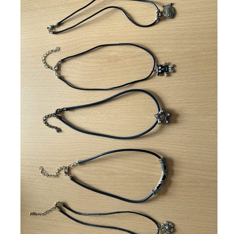 Hvide hjerter Ø42 mm med lædersnor: 17 stk.