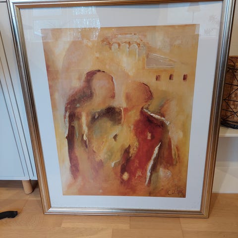 Indrammet i mørk træramme (90x120 cm.) med glas