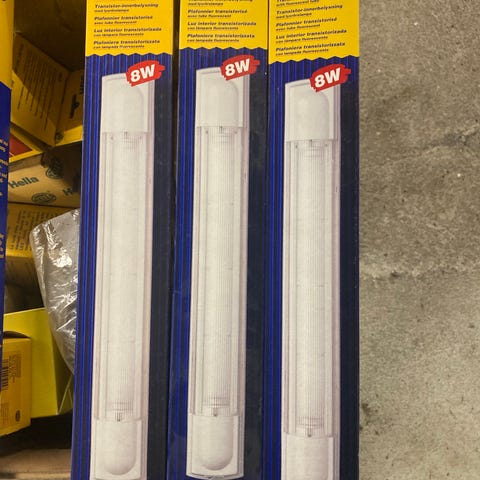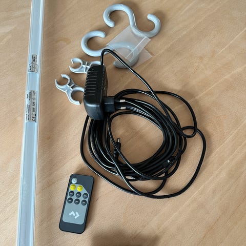 Der er 2 startsæt + 4 lysrør (længde 121 cm) til prisen, inkl. fjernbetjening og samle stykke.