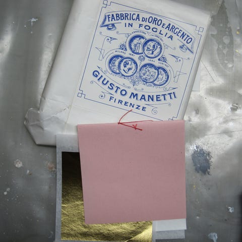 Ikke til at tælle, men der er rigtig mange ark bladguld i stort format (ca A5)