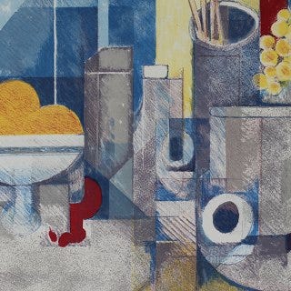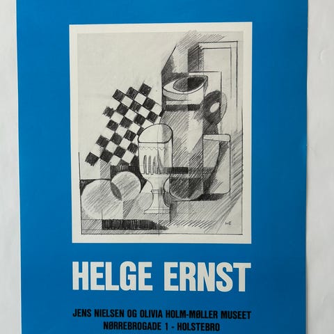 Plakat i glasramme, Helge Ernst 78/79 (1916-1991), motiv: Kollage, b: 62 h: 94, BYD. Odsherred kunstmuseum. Alluminiumsramme. Se også mine andre annoncer.