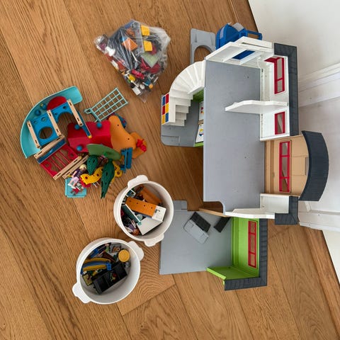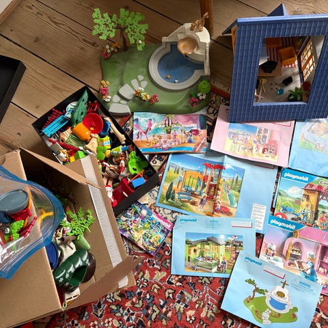 Legehus legetøj med 535 dele. Sættet indeholder et detaljeret to-etagers shopping center med møbler og tilbehør, inklusive figurer og forskellige små genstande til leg. Legetøjet er designet til børn og fremmer kreativ leg og rolleleg. Alder 5-12 år.