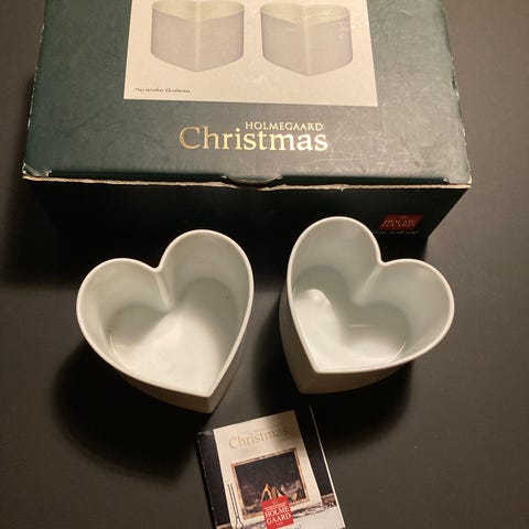 Sælger min Dansk kvalitet og Design Holmegaard Christmas stjerne skåle sæt i hvid keramik, designet til julebrug. Den er helt ny aldrig brugt.Sættet indeholder to stjerneformede skåle, der kan anvendes til dekoration eller servering i juletiden.