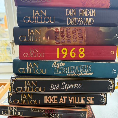 Blandet samling af bøger fra forskellige forfattere, herunder Jan Guillou, Håkan Nesser, og andre. Bøgerne varierer i genre og omfatter både hardcover og paperback udgaver. Forskellige størrelser og omslagsdesigns er repræsenteret. Velegnet til læsere med interesse for skønlitteratur og krimigenren.