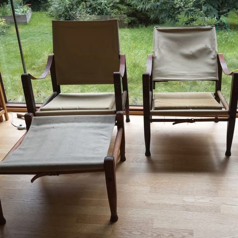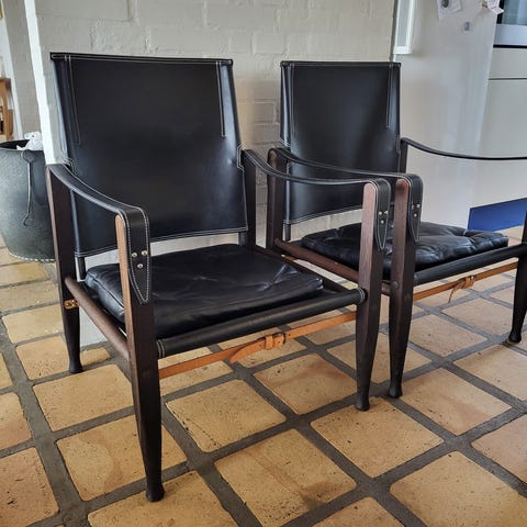 Nybetrukket med sort anilin læder af professionel møbelpolstrer.
