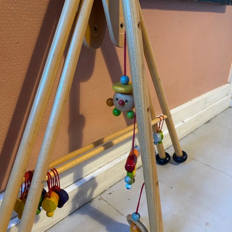 Playgym/ legetøjstativ/ aktivitetcenter fra ikea i birketræsfiner. Tre vedhæng følger med.