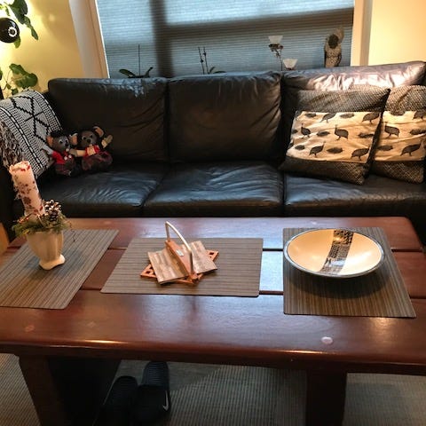 3-personers lædersofa, sæbebehandlet stel i bøg. Fungerer fint, sofaen har lidt brugsspor, se de sidste billeder.